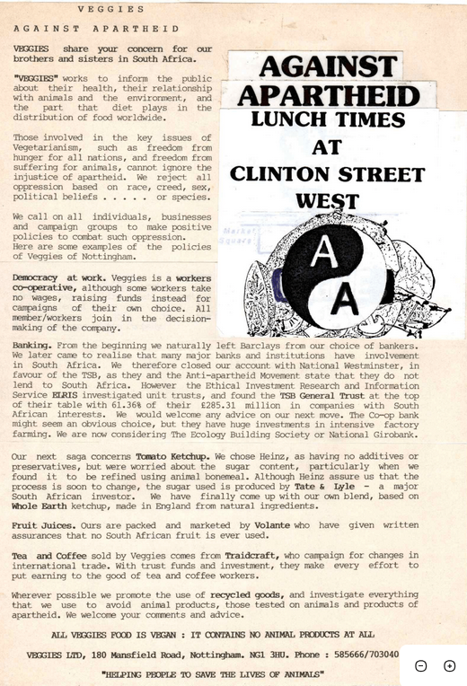 VEGGIES LTD, 180 Mansfield Road, Nottingham. NG1 3HU. Phone : 585666/703040